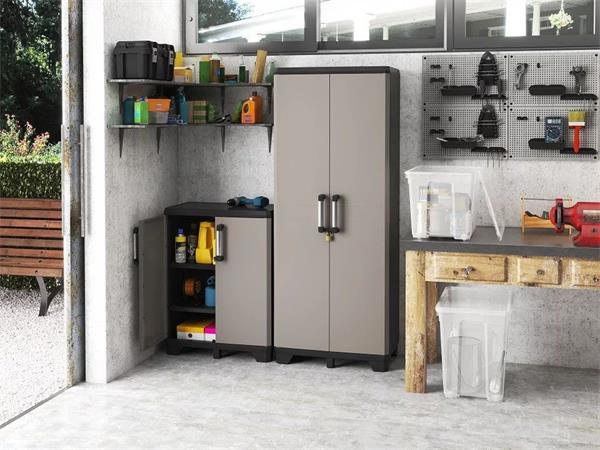 Szerszámtároló szekrény, alacsony, műanyag, KETER "Pro", fekete-szürke