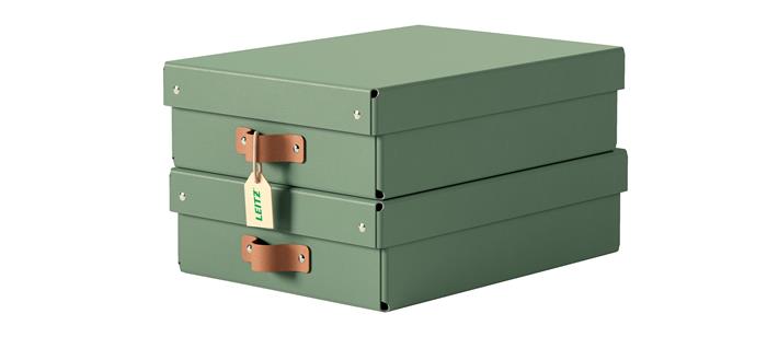 Maradj rendezett és érezd jól magad a Leitz Puro fedeles kartondobozok használatával, melyek azonnali tárolási lehetőséget kínálnak.