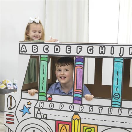 Az XL méretű játszóház ösztönzi a célirányos szerepjátékot, a nyelvi fejlődést és a mesemondást, miközben a gyerekek kifestik, díszítik és személyre szabják a saját terüket.