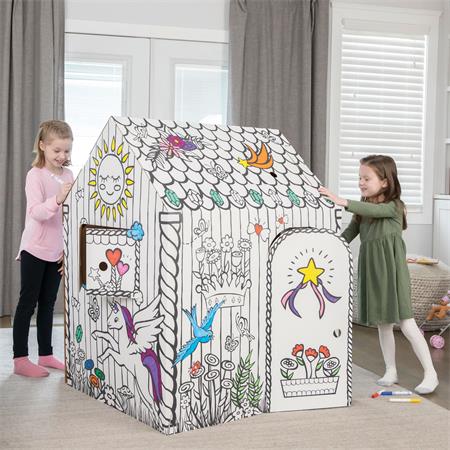 Játékház, színezhető, karton, FELLOWES, Egyszarvú házikó