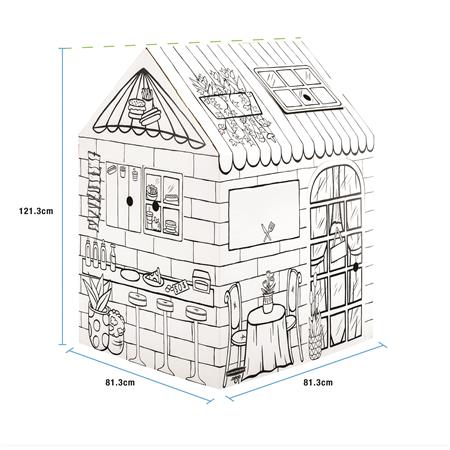 Az XL méretű játszóház ösztönzi a célirányos szerepjátékot, a nyelvi fejlődést és a mesemondást, miközben a gyerekek kifestik, díszítik és személyre szabják a saját terüket.