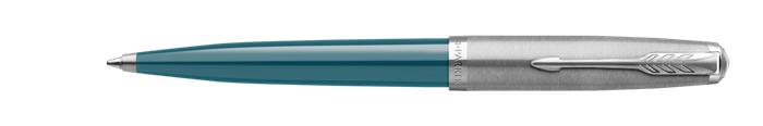 Golyóstoll, 0,7 mm rotációs, ezüst színű klip, türkiz tolltest, PARKER "Royal 51 Core", fekete