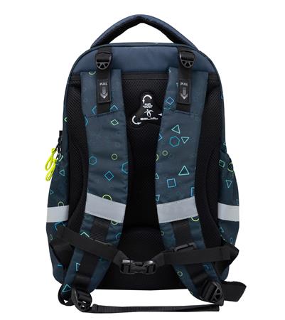 -állítható mellkaspánt, amely segít a terhelés egyenletes elosztásában, tehermentesítve a gyermek hátát és vállát – különösen ideális kisebb testalkatú gyermekek számára