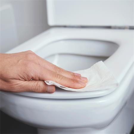 A Tork toalettülőke-tisztító megnyugvást jelent a mosdót felkeresők számára. A toalettülőke még tisztább lesz, ha áttörlik egy adag, toalettpapírra adagolt toalettülőke-tisztítóval.